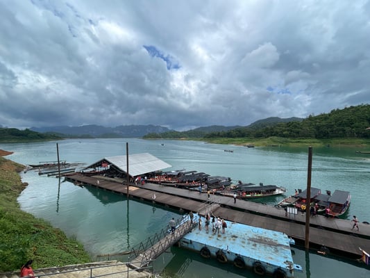 Zeit für das Frühstück, Schwimmen und Kanufahren bis wir um 10 Uhr auschecken und mit dem Boot etwa 45 Minuten zum Chiew Lan Lake Pier zurückkehren. Wieder ist es trocken oder regnet es