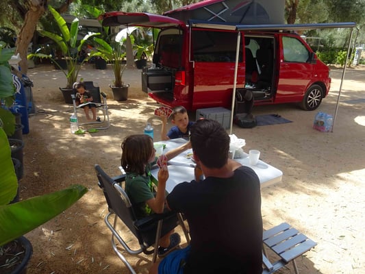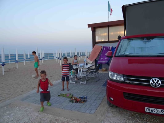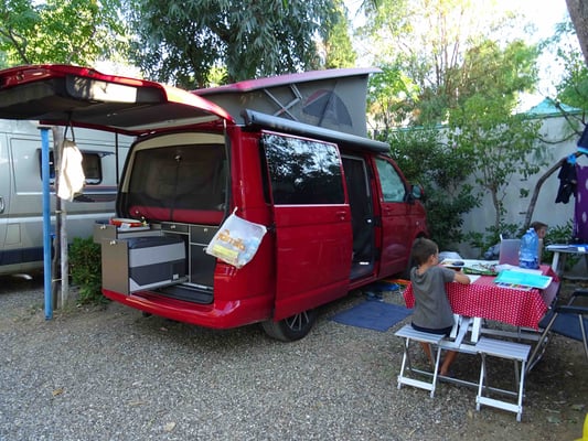 Keile, Ersatz -Fixleintücher und Plastikleintuch, Kissen, Zelt, Moskitonetz für hinten und Seite, Verdunklung für vorne, Teppich, Schaufel und Besen, Wäscheleine, 2 weitere Lampen, Kabel für Elektrisch, Kurbel und Heringe für Markise, Spanngummiset, Fenstertaschen hinten, zusätzliche Kühltasche, Tasche mit Elektronik, Strassenkarte, Trinkflaschen für Kids für unterwegs, Pixibücher, Kugelschreiber, europäisches Unfallprotokoll, kleine Apotheke, Trittbrett